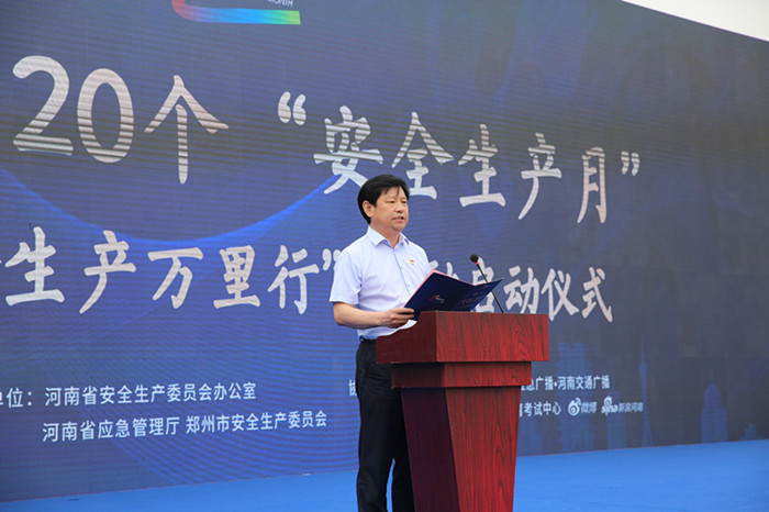 6月1日上午,河南省“安全生产月”暨“安全生产万里行·河南中原行”启动仪式在郑州举行,副省长武国定出席启动仪式并宣布活动正式启动,省应急厅党委书记、厅长吴忠华致辞。